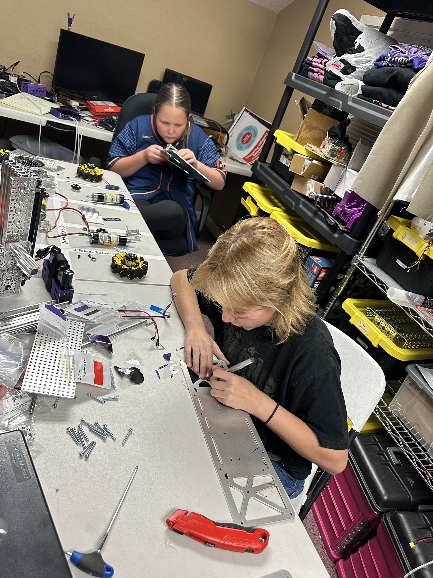 We have been super busy working on Ursula. Our intake concepts seem to work well, the lift mockup works and the extension works. Now that our custom panels have arrived (Thank you, Nomad) it’s just getting it all put together and hope that the combination of functions works as well as the individual parts. Thank you Guiffrida Enterprises for cutting our team number signs, gear/sprocket safety covers and pieces for our hanging assembly. Only 2 meetings between now and the scrimmage coming up on Saturday 11/9.
