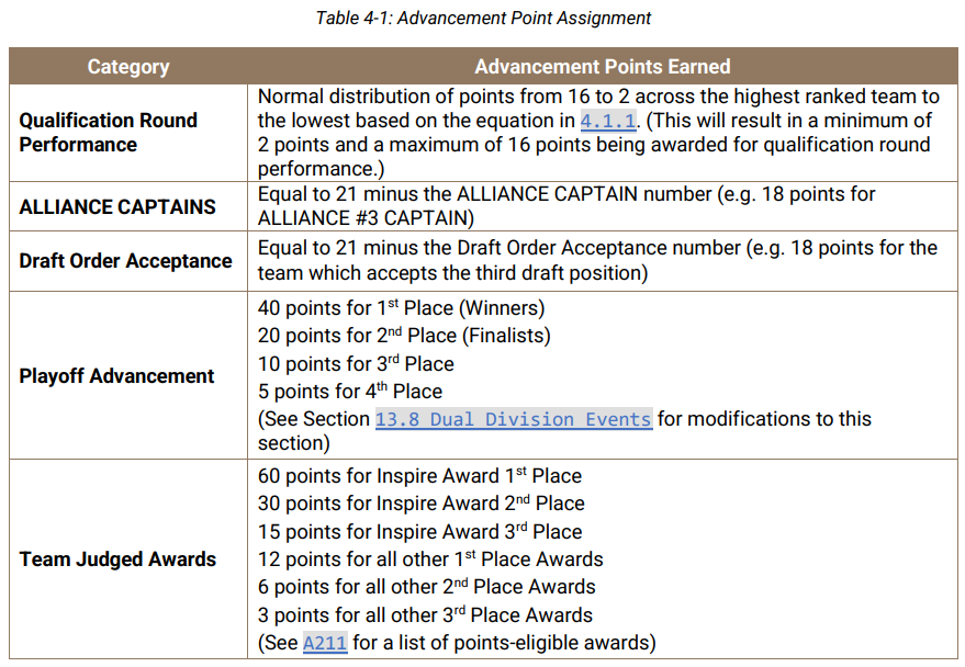 We did a review of our previous seasons to see if this point system were in place, would we still have advanced. Yes, all 3 times. That being said, the Montana 2019 season, the Winning Alliance Captain would not have advanced because they didn’t receive a 1st place award. Winning Alliance Captain or 1st Inspire is no longer a mathematical certainty for advancement. You need one or the other and a 1st place award in most cases. It will be interesting to see how this plays out.